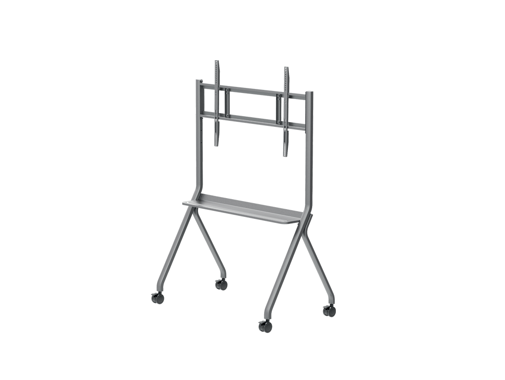 Carrello finitura metallica con ripiano e rotelle, carico massimo 100KG, adatto per interactive display e monitor 55″/65″/75″/86″