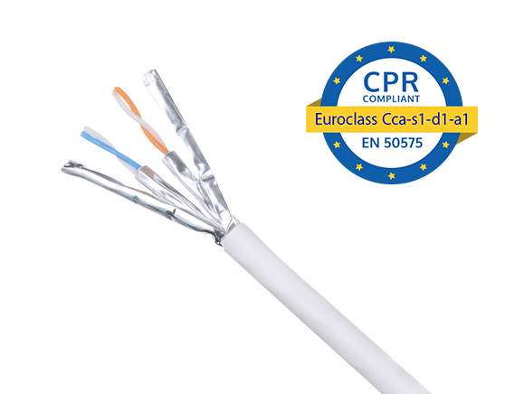 The TX6A^tm Cat 6A U/UTP copper cable is constructed of 23 AWG copper conductors with HDPE insulation. The conductors are twisted in pairs with an alien crosstalk barrier. All four pairs are surrounded by a HDPE flame-retardant jacket. The white, LSZH (IEC