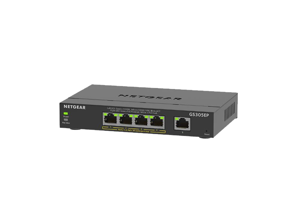 Il GS305EP è un Switch Gigabit Ethernet Smart Managed Plus PoE+ con 4 porte PoE+ e un budget PoE totale di 63 W per l’alimentazione di applicazioni PoE quali telefoni VoIP, telecamere IP per la sorveglianza, punti di accesso wireless e altro ancora. GS305EP include inoltre funzioni di gestione di rete di base e avanzate per ottimizzare le prestazioni delle reti aziendali