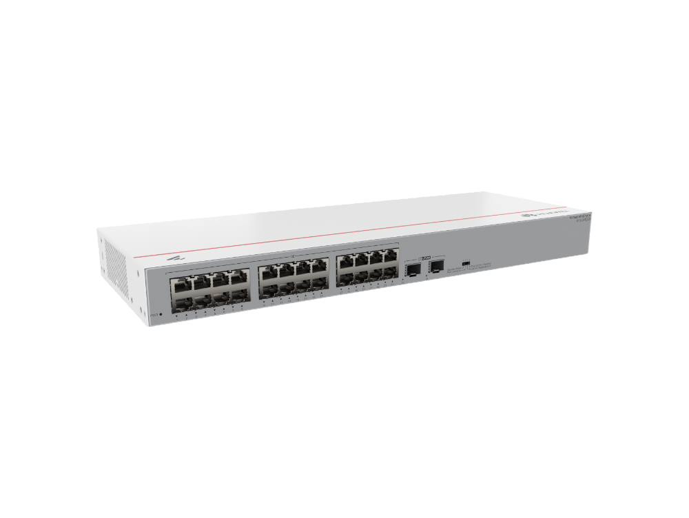 Switch Huawei 24 porte Gigabit e 2 SFP. Capacità 52 Gbit/s, forwarding 38.69 Mpps. Soluzione professionale affidabile per una gestione efficiente e veloce del traffico dati aziendale.