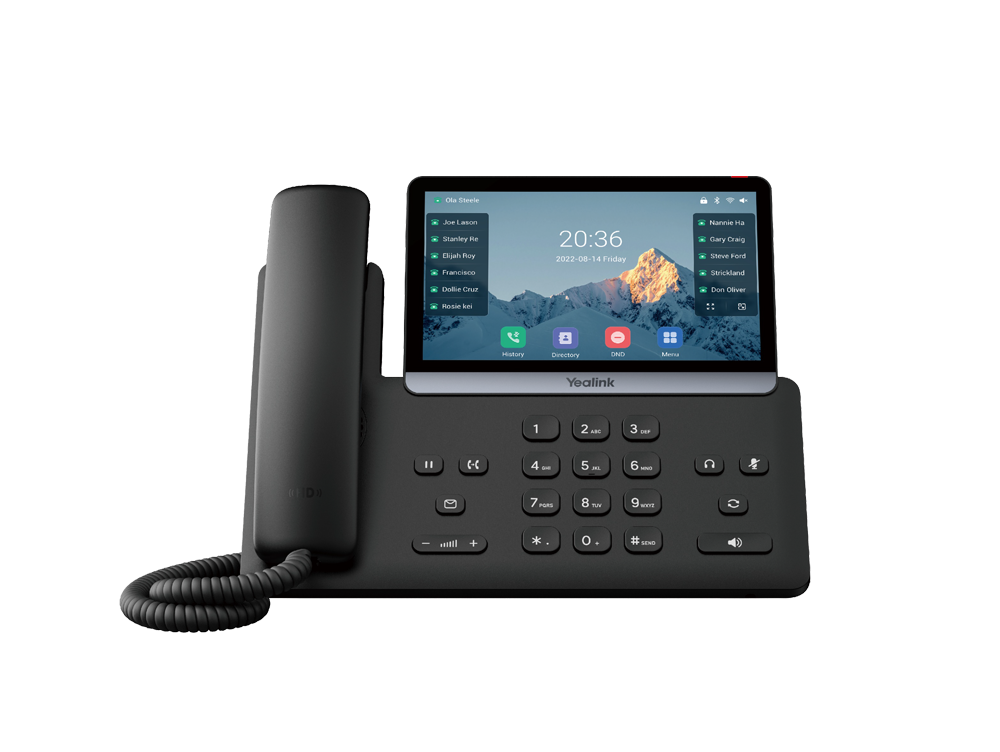 Yealink SIP-T77U è un telefono IP direzionale con display touch da 7″, progettato per ambienti professionali che richiedono prestazioni elevate, sicurezza avanzata e connettività flessibile.